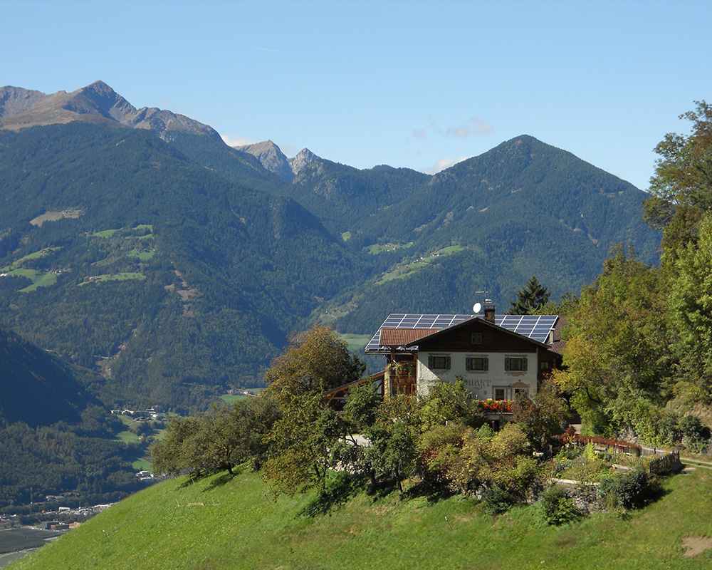 Directly on our farm you find the big homely holiday flat „FARMLIFE“. It has its own entrance, a large roofed balcony facing the south with a beautiful view over the Eisack valley. This is what makes it into an ideal place for eating, reading, sunbathing, relaxing or just lazing around.