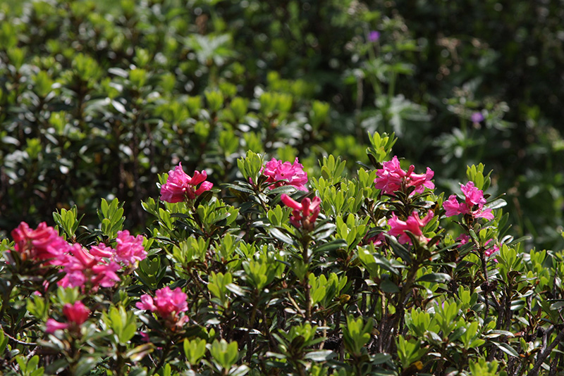 Spaziergänge auf ruhigen Wegen. Den Bergfrühling mit Krokus, Enzian, Alpenrose und die blühenden Obstbäume im Tal erleben.
