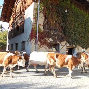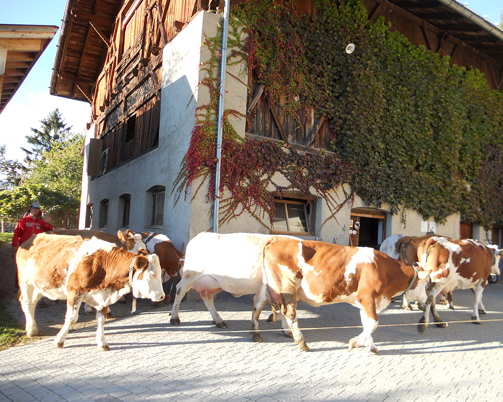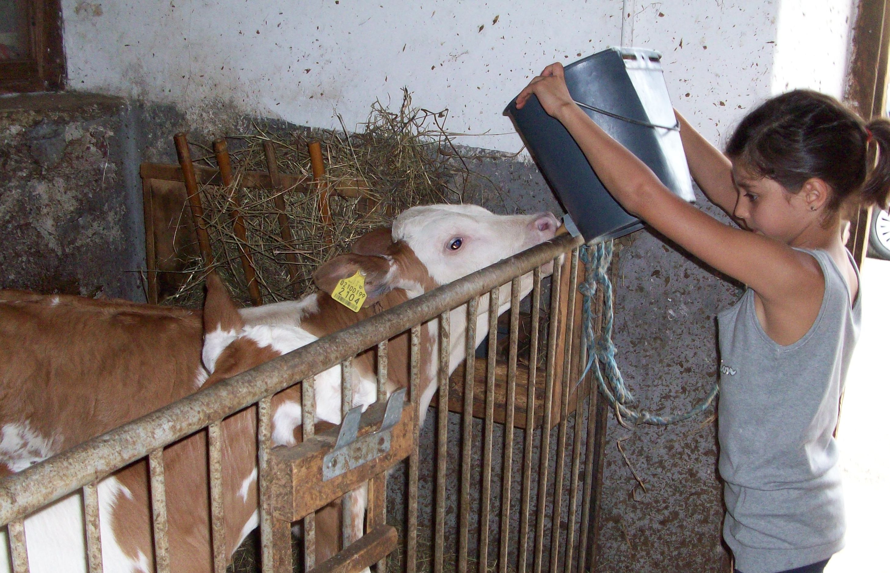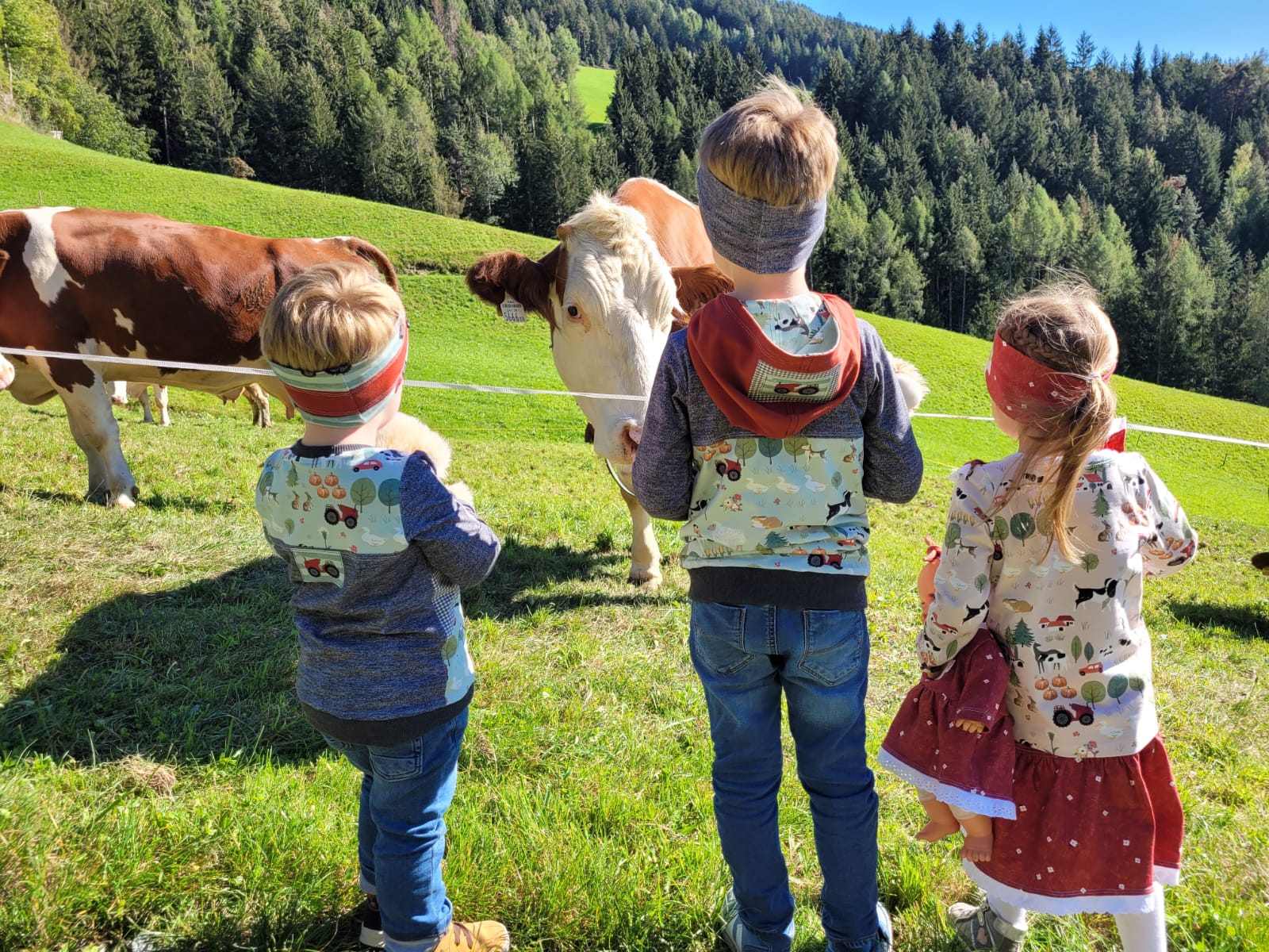 Unsere Kühe freuen sich besonders, wenn sie täglich von den kleinen und großen Gästen auf die Weide gebracht werden.
